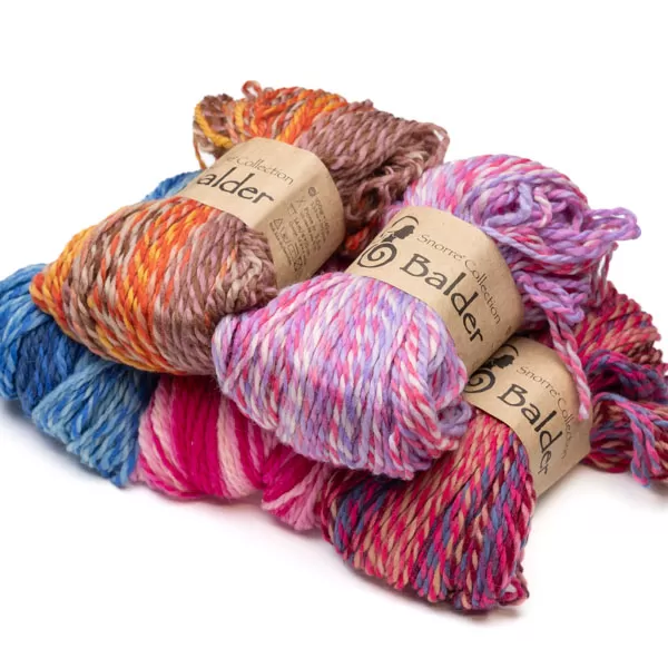 Balder Multi on monivärinen, paksu ja kuohkea konepestävä villalanka talven vaatteisiin ja asusteisiin. Pehmeä villa on miellyttävän tuntuista, lämmintä ja hengittävää, joten se on erinomainen materiaali niin sisävaatteisiin kuin ulkoiluneuleisiinkin.