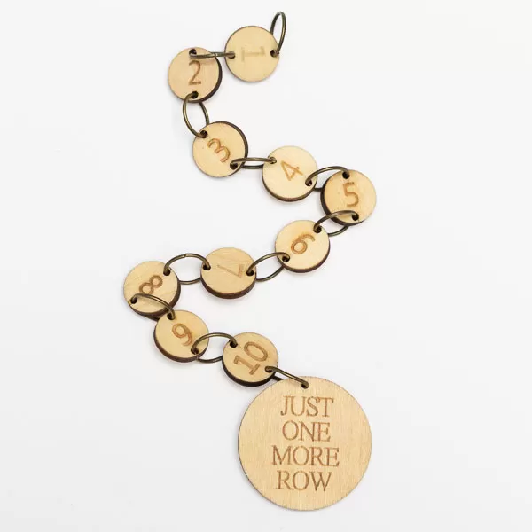 Ketjumallinen kerroslaskuri on kätevä apuri neuloessa, sillä se toimii samaan aikaan silmukkamerkkinä. Pujota aluksi laskurin ensimmäinen rengas puikolle silmukoiden väliin, ja aina laskurin kohdalle tullessasi ota puikolle ketjun seuraava rengas. Näin on helppo pitää kirjaa esimerkiksi kavennusten tai lisäysten välikerroksista.