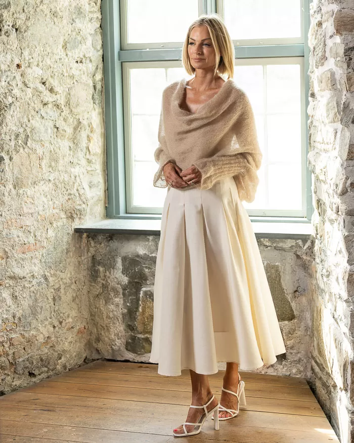 Katso myös muut vastaavanlaiset mallit: Skjär-kietaisupitsihuivi hihoilla ja Blege-kietaisupitsihuivi hihoilla