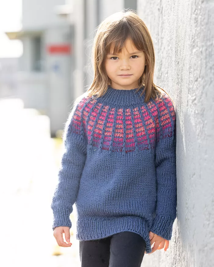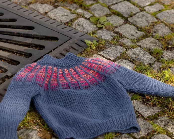 Sivuiltamme löydät ohjeen myös aikuisten Varde-raitakaarrokepaitaan.