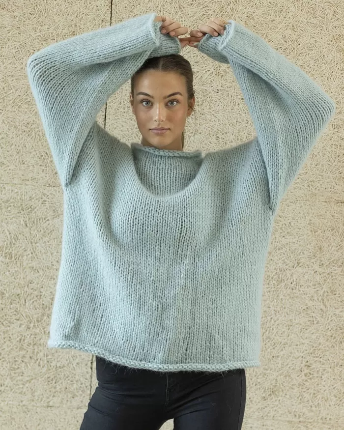 Pumpulinen, muhkea, supersöötti ja mahdottoman simppeli! Tämä neulepaita nousee nopeasti suosikkineuleeksi muiden neuleihanuuksien joukkoon, ja se yllä on helppo rauhoittua viettämään vapaa-aikaa ja rentoja kotoiluhetkiä. Laatikkomallinen ja erittäin väljä neulepaita neulotaan kokonaan sileänä neuleena ja neulomiseen tarvitaan vain yhden kokoiset puikot sekä 2-kertainen Alpaca Bris -lanka. Reunojen annetaan itsekseen ja omalla painollaan rullautua, joista paita saa somat yksityiskohtansa. Tämä yksinkertainen ja nopsaan neulottava neulemalli sopii myös aloittelevan neulojan puikoille. Valitse suosikkivärisi ja toteuta oma herkkuneule!