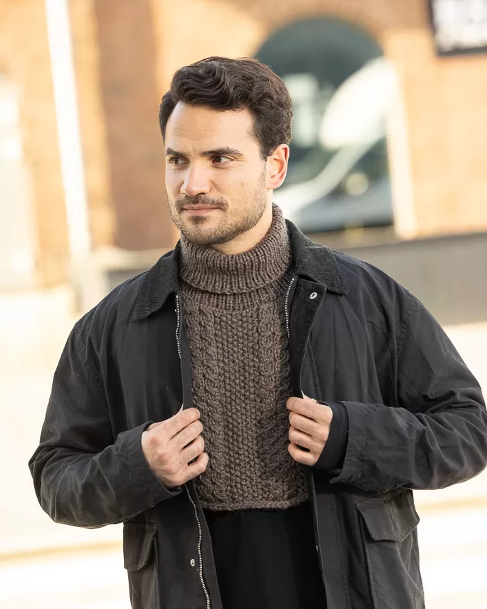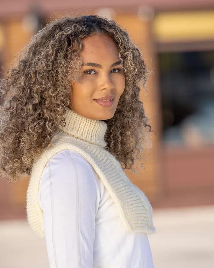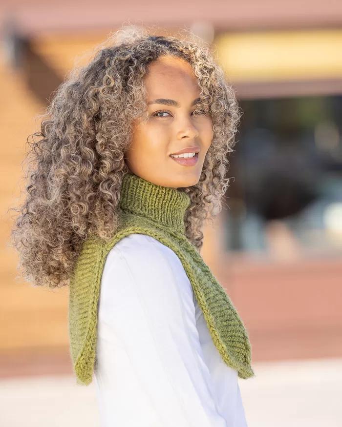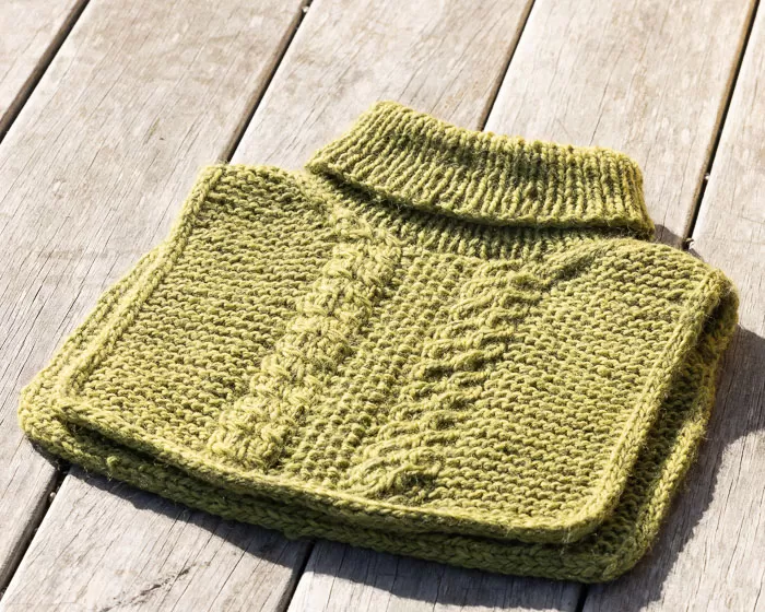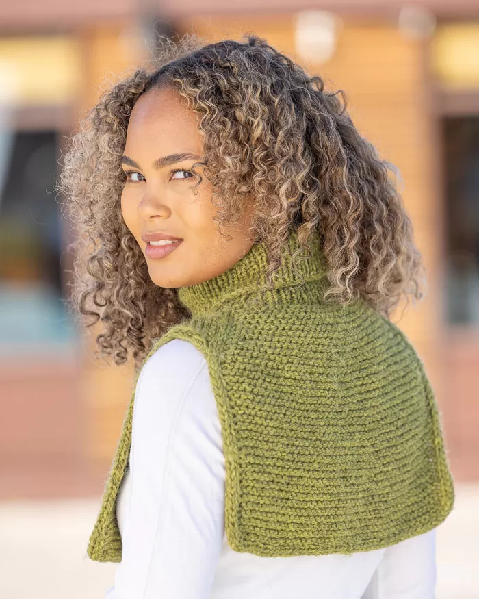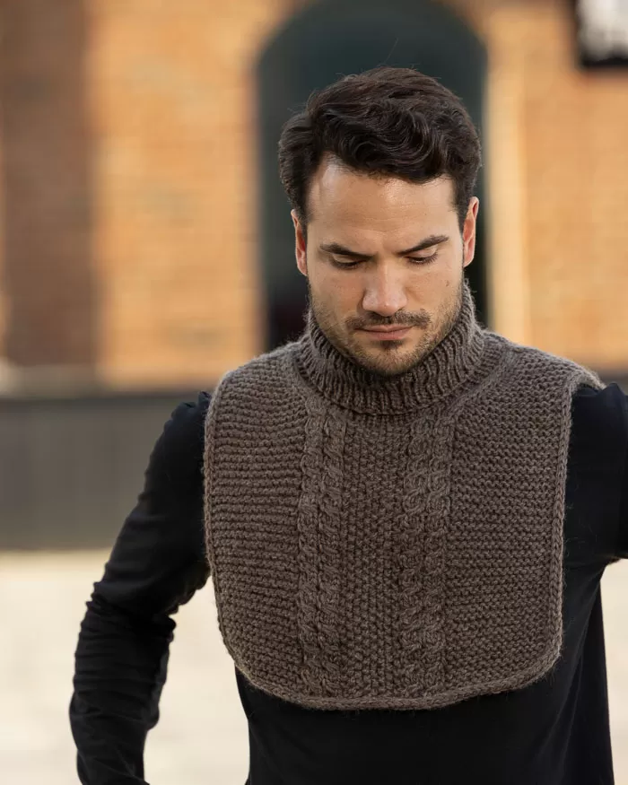 Tuuleeko niskaan, paleleeko selkä, entä tuntuuko kaulaliinan kietaisu kaulaan hankalalta? Jos vastasit johonkin näistä kyllä, on silloin ratkaisu ongelmaan paksu villakauluri! Tämän ylhäältä alas neulottavan kaulurin eurooppalaiset olkapäät istuttavat käytännöllisen asusteen hartioille kuin sopivat palapelin palat, ja korkean kaksin kerroin käännettävän kauluksen ansiosta tuuli ja viima ynnä pakkasen pistävä purevuus eivät pääse kylmettämään kaulan aluetta. Etukappaleen keskellä kulkeva palmikkoa ja pintaneuletta yhdistelevä koristepaneeli on upea yksityiskohta rauhallisen ainaoikeinneuloksen joukossa. Kaulurin viimeistellystä ja pehmeälinjaisesta ilmeestä vastaavat ulkoreunojen sekä viistojen eurooppalaisten olkapäiden pyöreät i-cord-reunat.