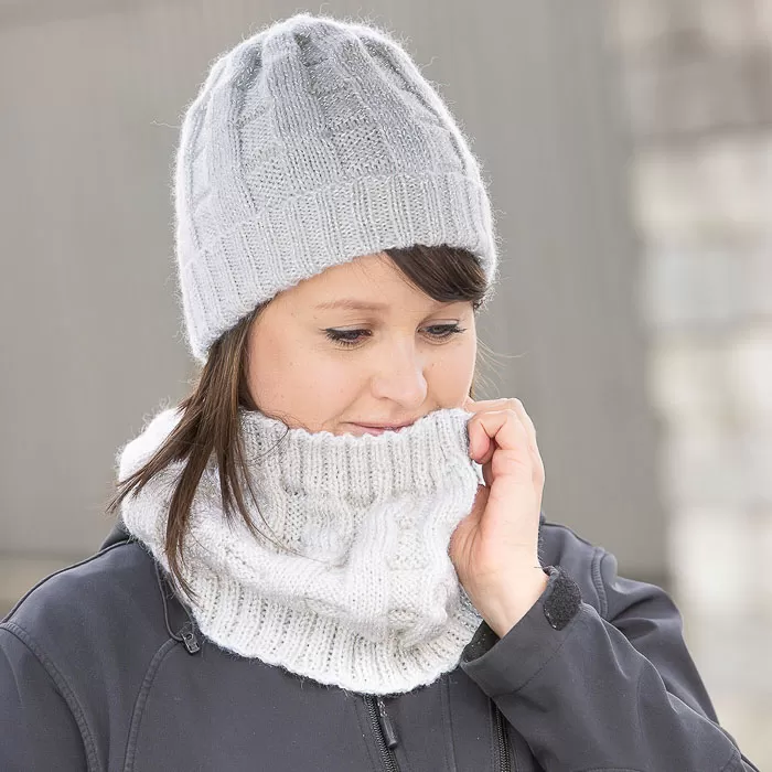 Pipo ja kauluri neulotaan pyörönä alhaalta ylös. Ohjeessa on yksi koko pipolle ja kaulurille.