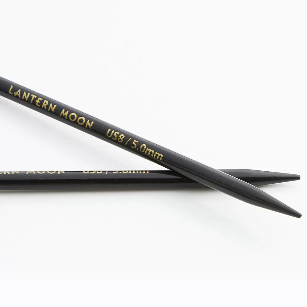 Lantern Moonin eebenpuiset Destiny-pyöröpuikot ovat todellista luksusta neulojalle. Eebenpuu on hyvin tiheää ja kovaa puuta, joten se sopii erinomaisesti neulepuikkojen materiaaliksi. Puiset puikot ovat miellyttävän kevyet käyttää ja tuntuvat kädessä metallipuikkoja lämpimämmiltä. Puikkojen pinta on viimeistelty silkinsileäksi, joten silmukat liukuvat puikolla sujuvasti. Puikoissa käytetty eebenpuu on intialaista alkuperää, ja Lantern Moon ostaa käyttämänsä materiaalin hallituksen hyväksymiltä ja valvomilta toimittajilta.