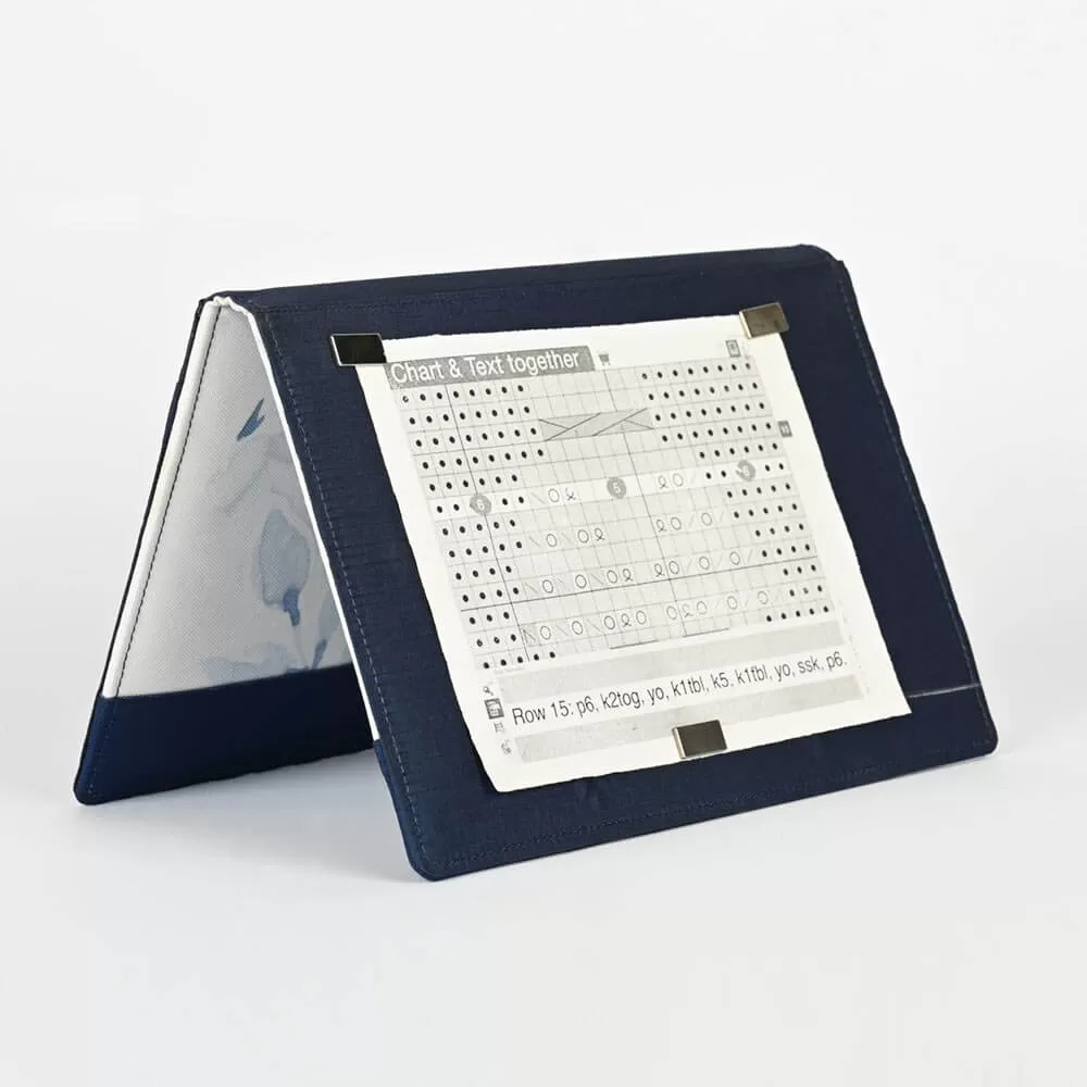 Blossom-ruutupiirrosteline tekee neuleohjeen seuraamisesta helpompaa! Telineeseen on kätevä kiinnittää neule- tai virkkausohje, ja erityisesti ruutupiirrosten seuraaminen helpottuu. Ohjekansiona toimiva teline menee pieneen tilaan ja sen saa pystyasentoon nepparikiinnityksellä. Paperit pysyvät telineessä kiinni voimakkailla magneeteilla. Pitkä magneettiliuska toimii rivinnäyttäjänä.