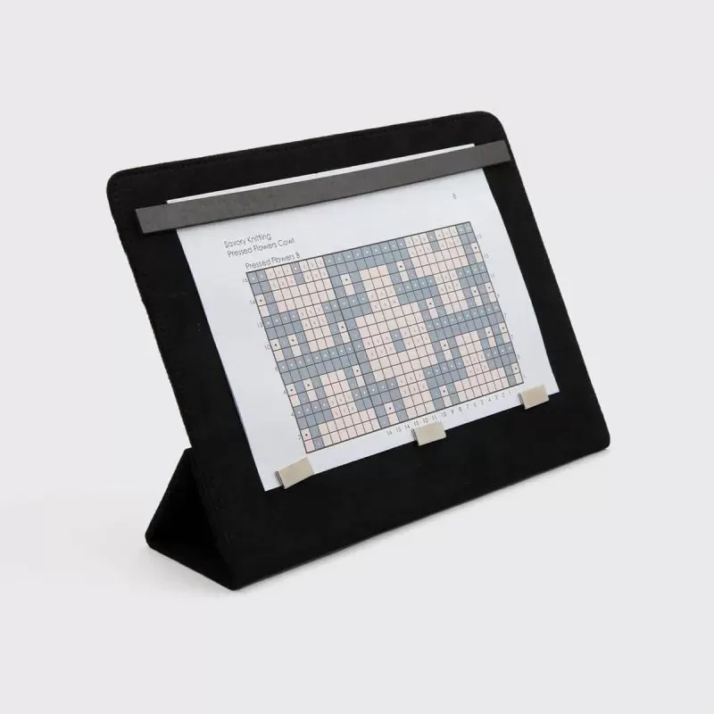Ruutupiirrosteline tekee neuleohjeen seuraamisesta helpompaa! Telineeseen on kätevä kiinnittää neule- tai virkkausohje, ja erityisesti ruutupiirrosten seuraaminen helpottuu. Ohjekansiona toimiva teline menee pieneen tilaan ja sen saa pystyasentoon nepparikiinnityksellä. Paperit pysyvät telineessä kiinni voimakkailla magneeteilla. Pitkä magneettiliuska toimii rivinnäyttäjänä.
