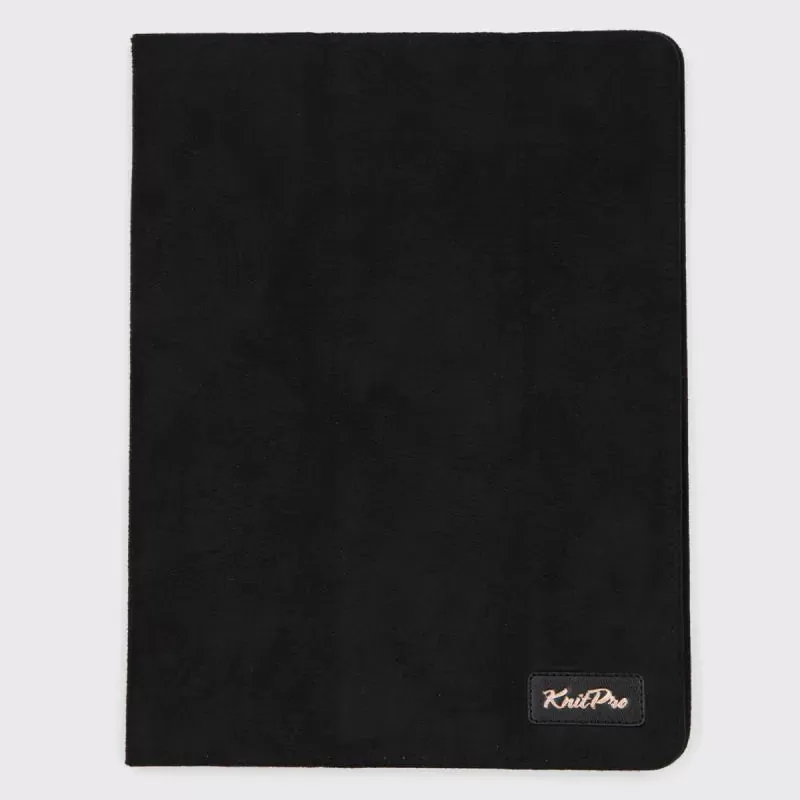Ruutupiirrostelineen ulkopinta on mustaa mokkajäljitelmää. Vetoketjulliseen pikkutaskuun saat talteen myös pienet neuletarvikkeet.