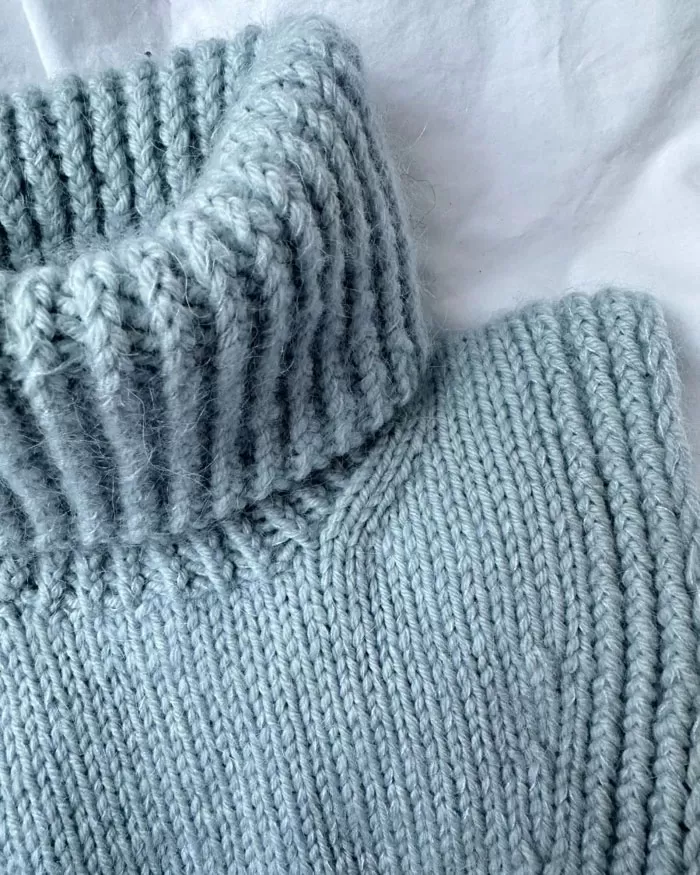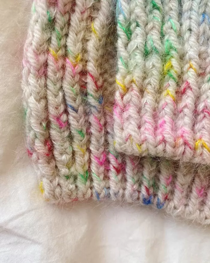 Kauluri neulotaan kahdella langalla yhtä aikaa.