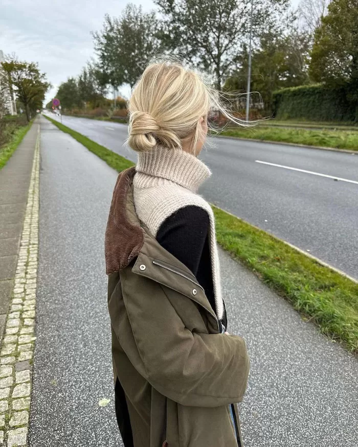 Kauluri neulotaan kahdella langalla yhtä aikaa.