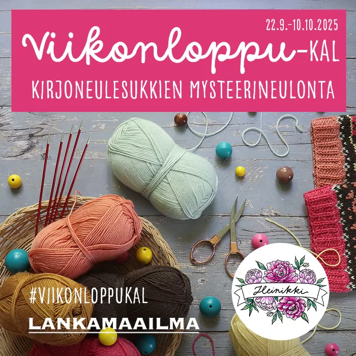 Viikonloppu-sukat neulottiin mysteerineulontana syksyllä 2025. Langat ja ohjeen Viikonloppu-sukkiin voit ostaa nyt kätevästi valmiina tekemispakettina.